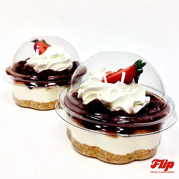 Copo (380ml) feito com material resistente e transparente, permite que a beleza de seus doces esteja amostra enquanto estão protegidos, além de possuir uma tampa bolha que garante elegância e sofisticação ao resultado final. É o conjunto perfeito para venda de doces, bombons, sobremesas, salgados e muito mais!