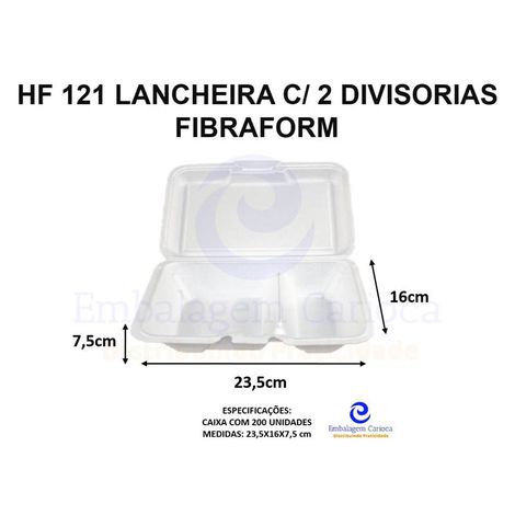 HF 121 LANCHEIRA C/ 2 DIVISORIAS EPS 23,5X16X7,5 CM C/200 FIBRAFORM (ESTOJO)