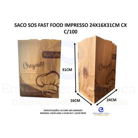 SACO SOS FAST FOOD IMPRESSO 24X16X31CM CX C/100 17,5KG